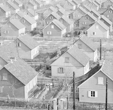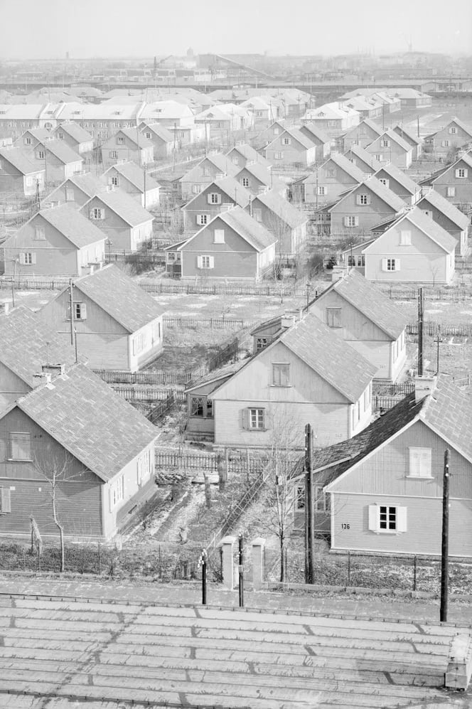 Drewniane domy, które powstały na obszarze około 40 hektarów, mogły pomieścić od 2500 do nawet 4000 robotników. Budynki te sprowadzono do Polski z ZSRR i – jak wskazują historycy – były one prawdopodobnie elementem fińskich reparacji wojennych, które Finlandia musiała zapłacić Związkowi Sowieckiemu po II wojnie światowej. W ten sposób w krótkim czasie wyrosło całe robotnicze osiedle.