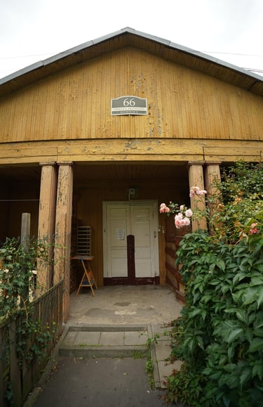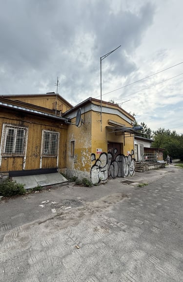 Widzieliśmy mieszkańców odpoczywających w ogrodach, a na pobliskim boisku młodzież grała w piłkę. Drewniana zabudowa osiedla łączy w sobie kontrasty – obok zaniedbanych domów, które wyglądają na opuszczone, wciąż działają miejsca spotkań lokalnej społeczności. Na drzwiach budynków można znaleźć ogłoszenia o wydarzeniach, takich jak zajęcia czy spotkania klubów szachowych.