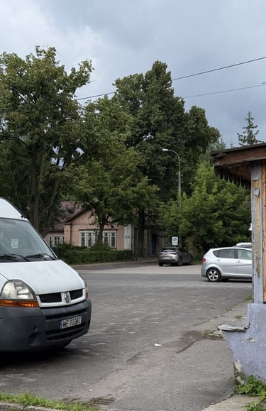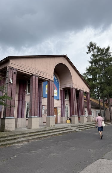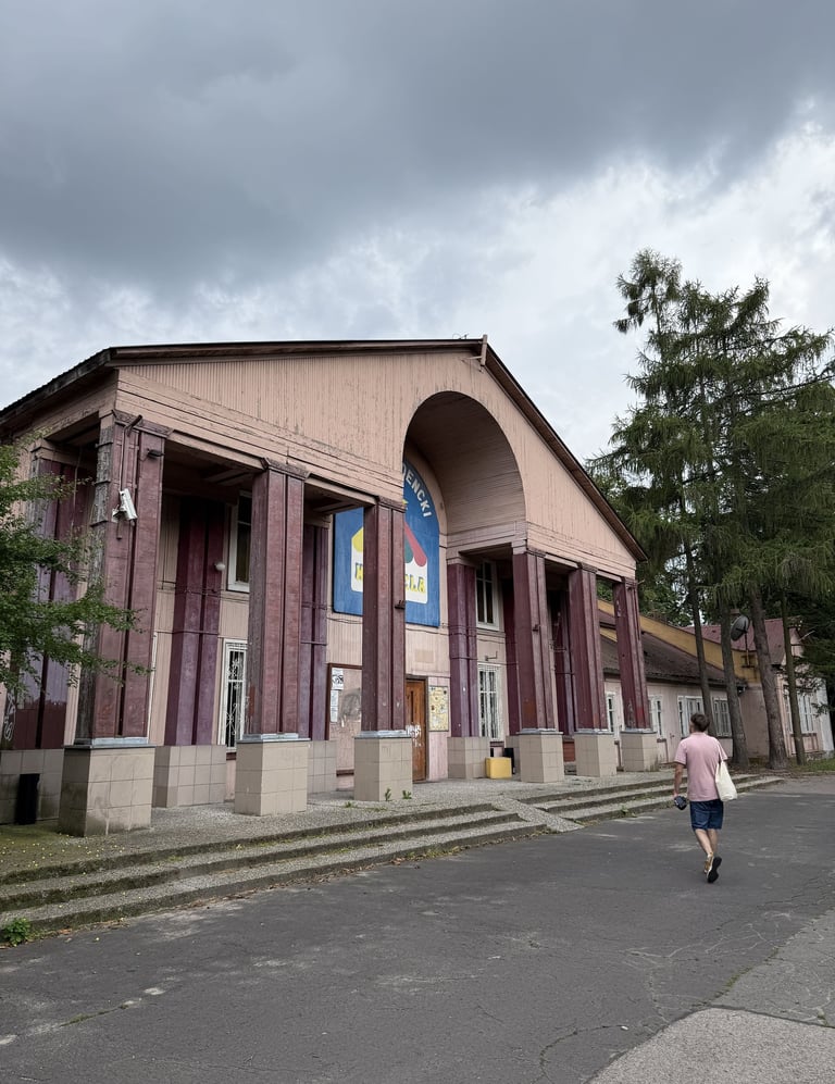 Kolejnym skojarzeniem związanym z Osiedlem Przyjaźń jest wyobrażenie miast znajdujących się tuż za wschodnią granicą Polski. Wyjechaliśmy samochodem, parkując obok dawnego klubu Karuzela. Na placu siedziało kilka osób, jednak okolica była cicha i spokojna. Niektóre budynki sprawiają wrażenie opuszczonych, inne wręcz przeciwnie – tętnią życiem.