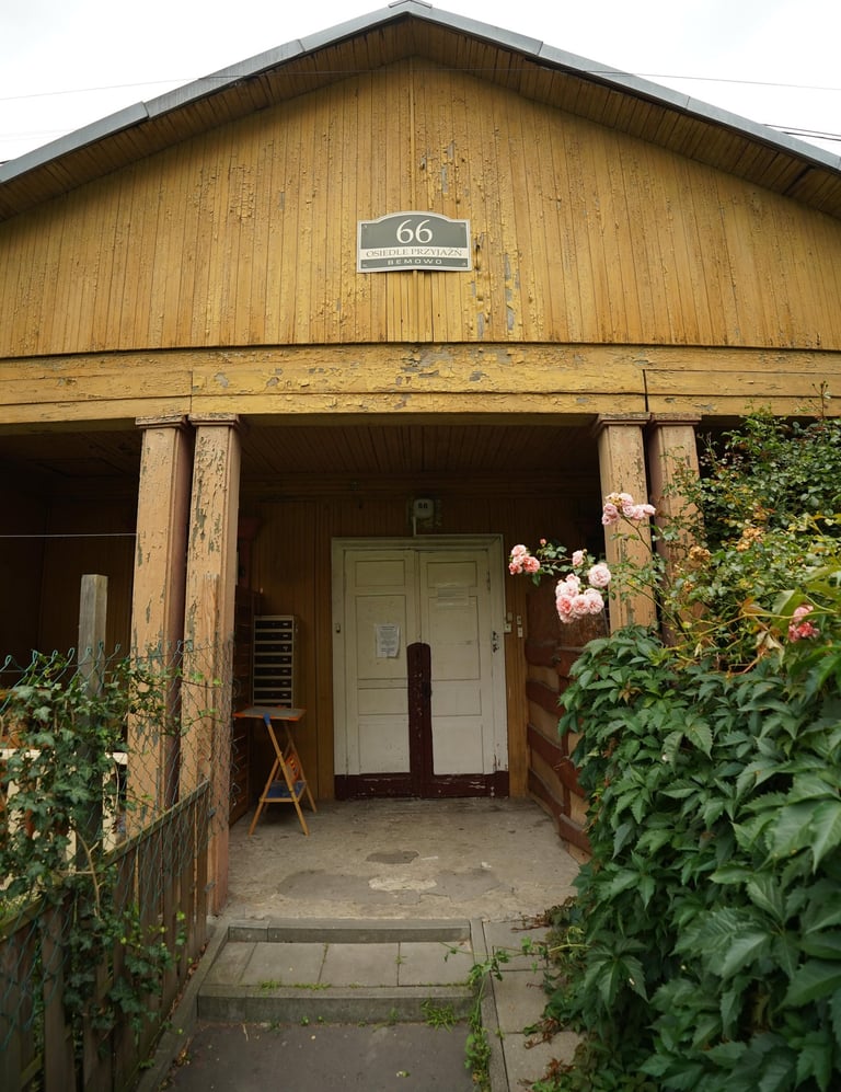 Odwiedziliśmy Osiedle o niezwykłej nazwie Przyjaźń latem 2025 roku i było to niezwykłe przeżycie pod wieloma względami. To miejsce wyróżnia się przede wszystkim niską, drewnianą zabudową, która tak bardzo kontrastuje z nowoczesną, wielkomiejską architekturą stolicy. Spacerując wśród drewnianych domków, można odnieść wrażenie, że znajdujemy się raczej w klimatycznej podlaskiej wiosce (tu ukłon w stronę naszego ulubionego Podlasia), niż kilka kilometrów od centrum Warszawy.