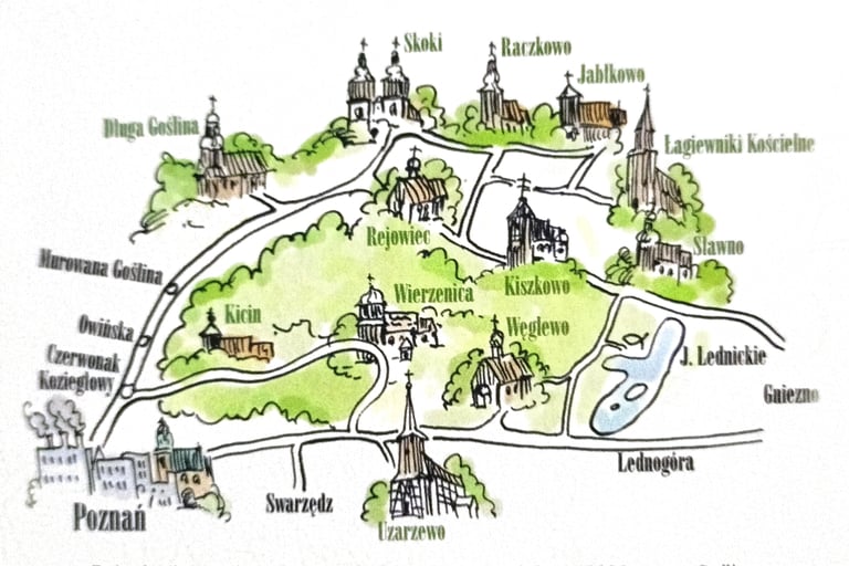Szlak Drewnianych Kościołów wokół Puszczy Zielonka to wyjątkowa trasa prowadząca przez malownicze wioski i lasy Wielkopolski, umożliwiająca odwiedzenie 12 zabytkowych drewnianych kościołów o niepowtarzalnym uroku. Szlak został specjalnie oznakowany, co ułatwia nawigację zarówno rowerzystom, jak i pieszym oraz zmotoryzowanym turystom. Każdy z tych kościołów skrywa fascynującą historię, a ich wnętrza zachwycają bogactwem detali i charakterystycznym zapachem drewna, który potęguje wrażenia z podróży. Trasa jest doskonałym wyborem dla miłośników aktywnego wypoczynku oraz osób pragnących odkryć mniej znane zakątki Wielkopolski. Niezależnie od tego, czy wybierzesz rower, pieszą wędrówkę czy podróż samochodem, Szlak Drewnianych Kościołów pozwoli Ci doświadczyć historii i architektury w niepowtarzalny sposób. Podróżowanie to nie tylko zwiedzanie, ale także odkrywanie miejsc wszystkimi zmysłami – sprawdź sam.