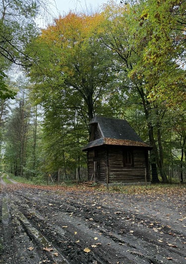 Kapliczka jak z gór! Zakopiański styl na nizinach Wielkopolski to nietypowy widok. Idealny dowód na to, że Rąbiński Las to nie tylko jesienny spacer, ale i wyjątkowa historia!