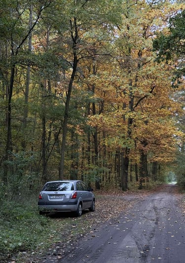 Rąbiński Las - idealne miejsce na spacer, zbieranie grzybów, jesienną sesję zdjęciową czy chwilę relaksu w naturze. Sami zobaczcie jak Kia Rio dumnie prezentuje się skąpana w jesiennych barwach.